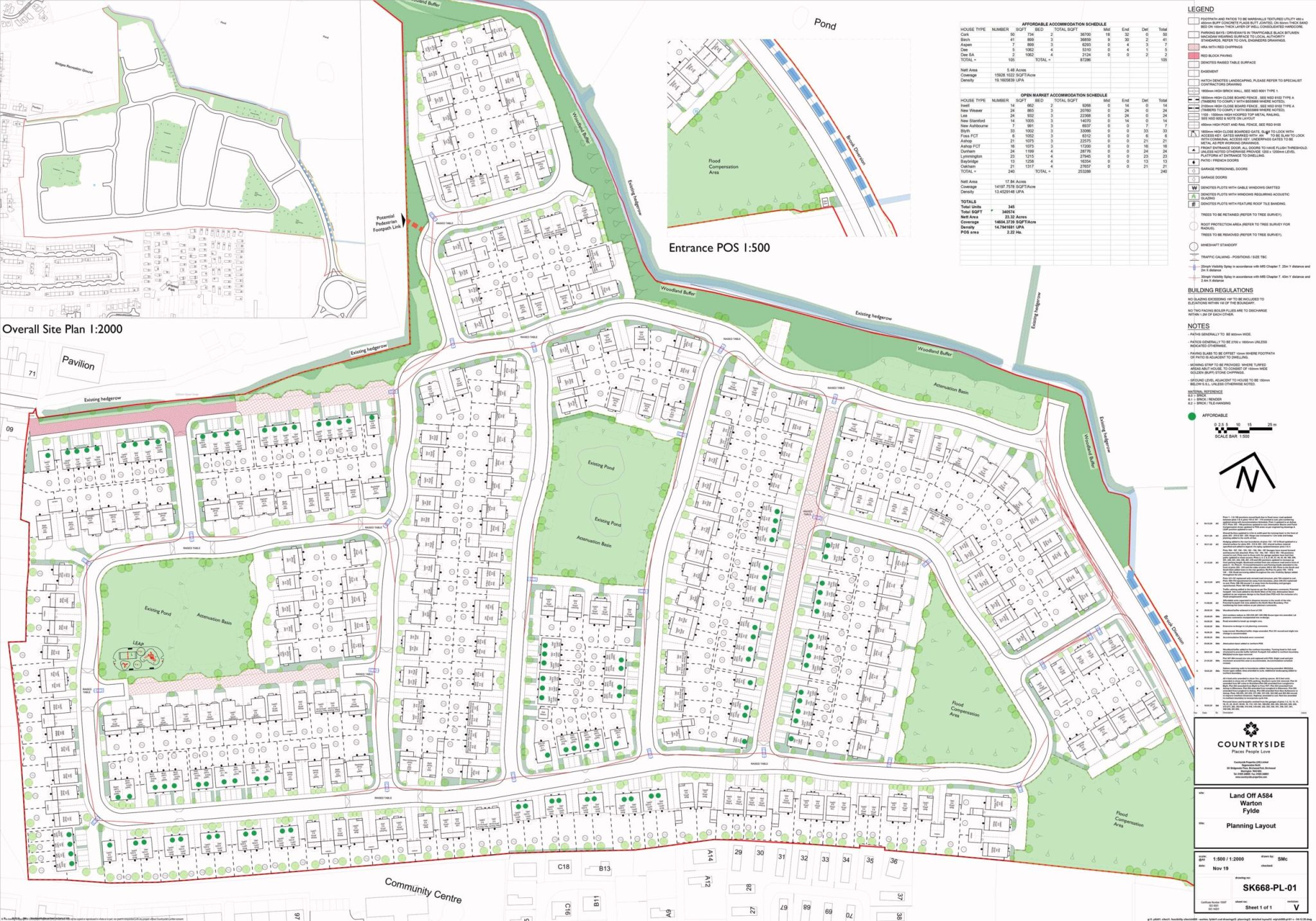Due to our experience in Fylde and Warton, in 2019, we were approached by Countryside Properties to prepare and submit a Reserved Matters application for land to the east of Warton. We worked with Countryside properties to bring forward this development, which gained Reserved Matters approval in January 2021. Since this time, we have been working with Countryside Properties to prepare, submit and manage the relevant discharge of condition applications.